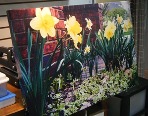 There it was! I found a great image that could easily go from photo to canvas. The photo contained some bright yellow daffodils glowing in the sunlight just outside our front porch. It was just what I was looking for!